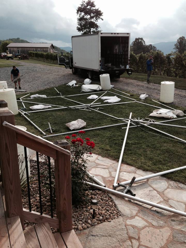 Time stops for no one… and so, on ThursdaySeptember 11th we packed up as much stuff as we could fit into my Jeep and headed to Asheville for wedding weekend #2. My daughter Amanda, is the consummate planner and risk avoider. She had talked her sister out of the notion of an outdoor wedding and had been adamant that she would never put her wedding day at odds with the whims of mother nature. Things don’t always happen the way we envision them – Note the picture of a tent being assembled for an outdoor wedding…